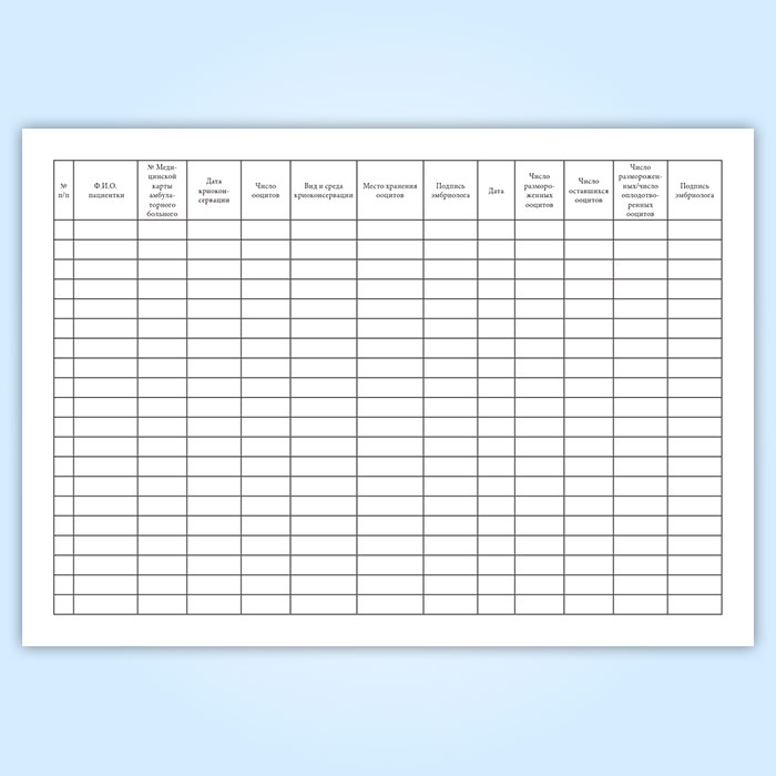 Журнал учета, хранения и использования криоконсервированных ооцитов пациенток
