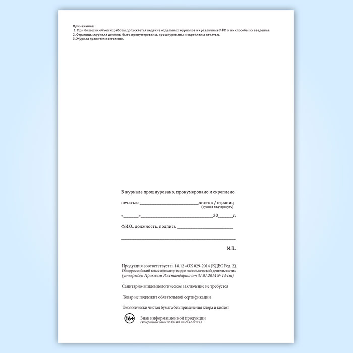 Страницы журнала должны быть пронумерованы, прошнурованы и скреплены печатью.