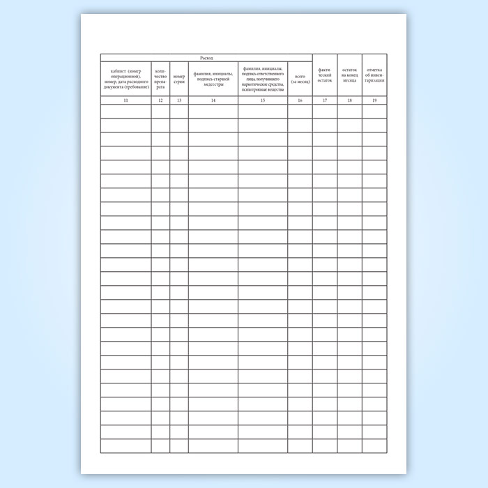 - фамилия, инициалы, подпись старшей медсестры фамилия, инициалы, подпись ответственного лица, получившего наркотические средства, психотропные вещества