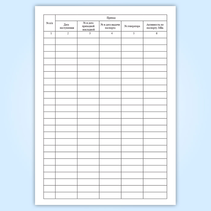 Приходно-расходный журнал учета генераторов радионуклидов имеет графы: