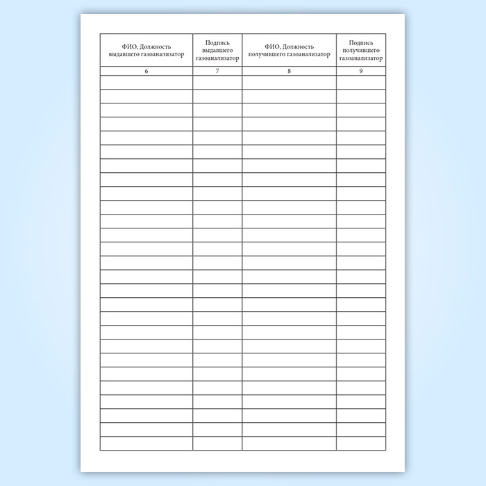 Учет выдачи газоанализаторов ведется по журналу, в котором указывают дату выдачи газоанализатора и ФИО получившего газоанализатор.
