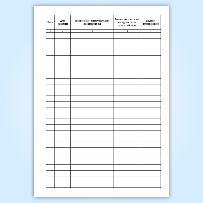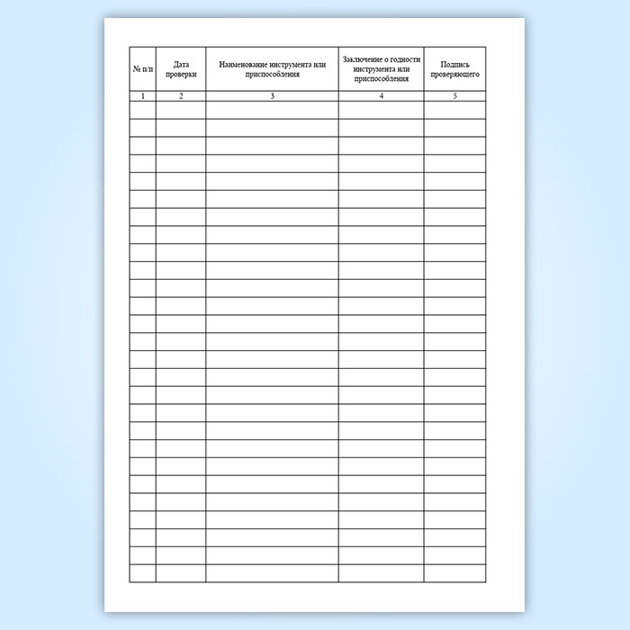 Журнал записи результатов проверки инструментов и предохранительных приспособлений