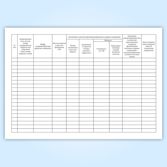 Наименование узла, детали; номер соединения по журналу или сварочной схеме; номер журнала /схемы