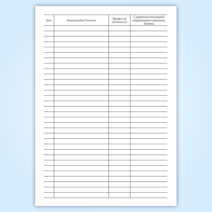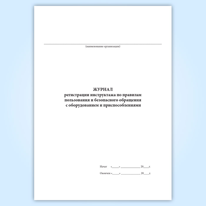 К работе с оборудованием и приспособлениями допускаются работники, прошедшие в установленном порядке обязательный инструктаж. Регистрация проведенного инструктажа по правилам пользования и безопасного обращения с оборудованием и приспособлениями производится в журнале.