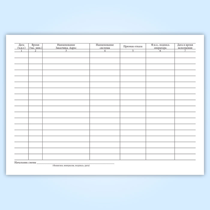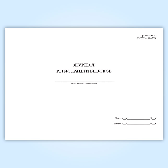Форма журнала регистрации вызовов соответствует Приложению Б.7 к ГОСТ Р 54101-2010 "Средства автоматизации и системы управления. Средства и системы обеспечения безопасности. Техническое обслуживание и текущий ремонт"