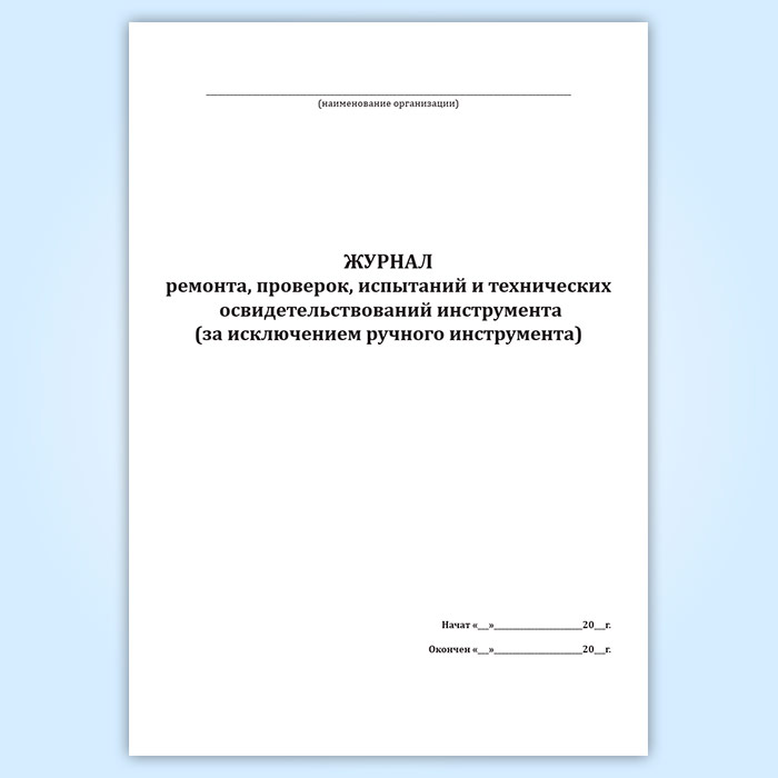 Журнал ремонта, проверок, испытаний и технических освидетельствований инструмента (за исключением ручного инструмента) регламентируется Правилами по охране труда при работе с инструментом и приспособлениями.