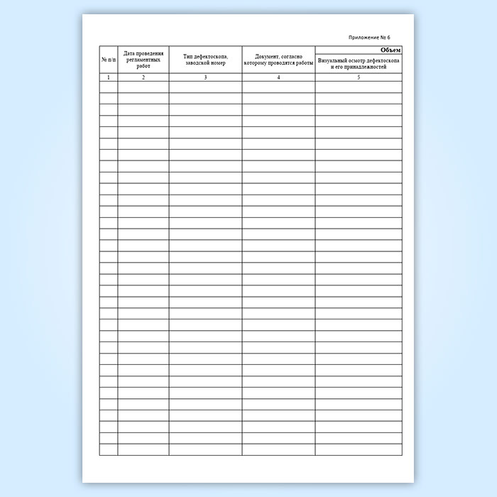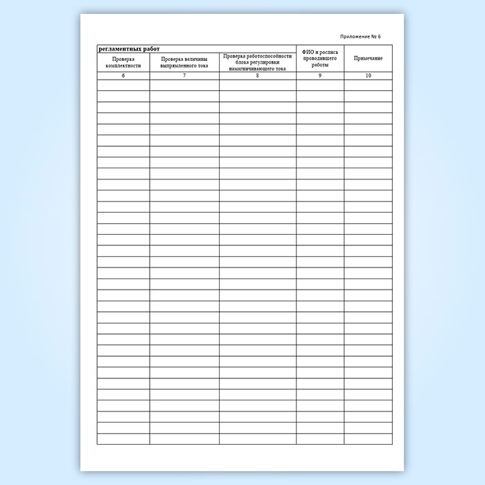 Журнал проведения регламентных работ на магнитных дефектоскопах (Приложение № 6)