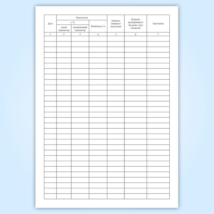 Журнал предусматривает, что измеряться и фиксироваться климат (температура и влажность) будет не реже одного раза в неделю и результаты записываться в журнал.