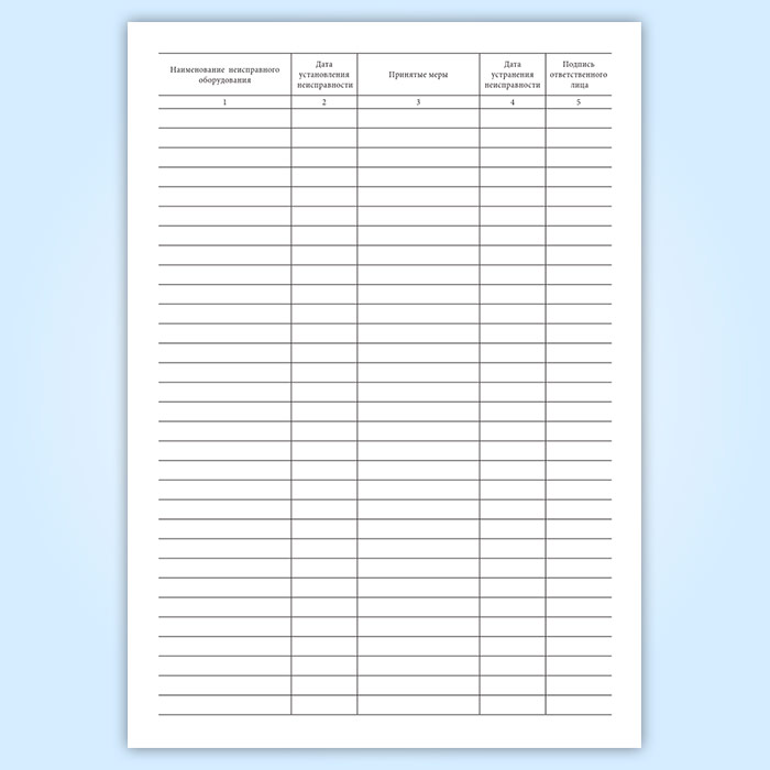 Обо всех видах выполненного обслуживания и ремонта в паспортах (формулярах) оборудования и журнале учета поломок и ремонта оборудования делаются соответствующие записи