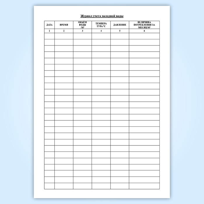 Журнал учета параметров холодной воды имеет графы (столбцы):