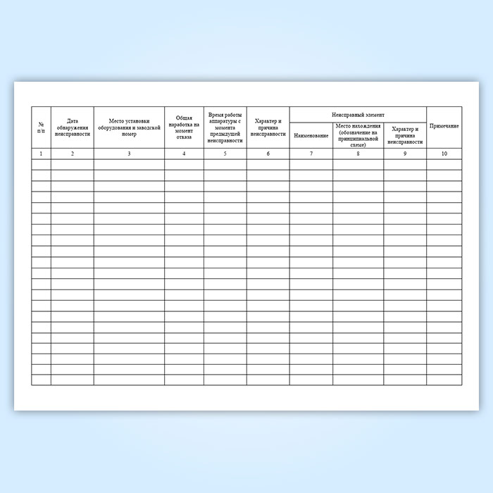 Для учета неисправностей средств измерений, автоматики, технических устройств ведут журнал, в котором фиксируют основные сведения об обнаруженных неисправностях, а также их причины и время работы аппаратуры с момента предыдущей неисправности.