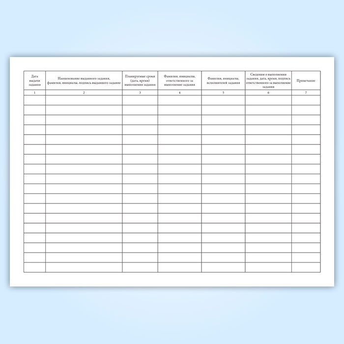 Ответственный руководитель выдает задание персоналу, при этом делает запись в журнале выдачи производственных заданий.