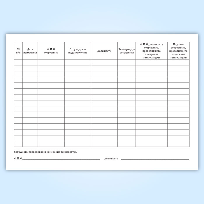 Журнал регистрации измерения температуры сотрудников для профилактики коронавируса имеет графы:
