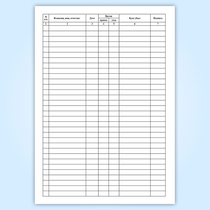 См. также Журнал прибытия и убытия работников, графы которого отличаются.