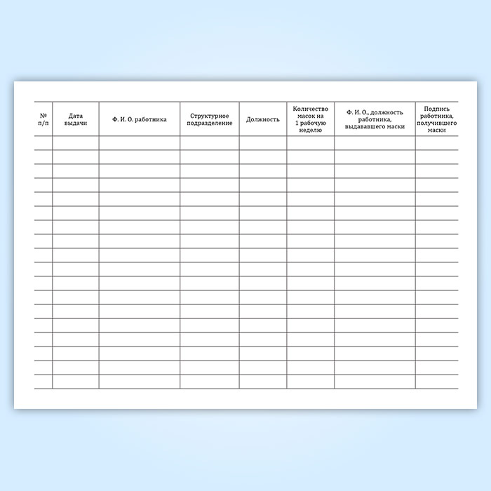 См. также Журнал регистрации выдачи медицинских масок сотрудникам, графы которого отличаются.