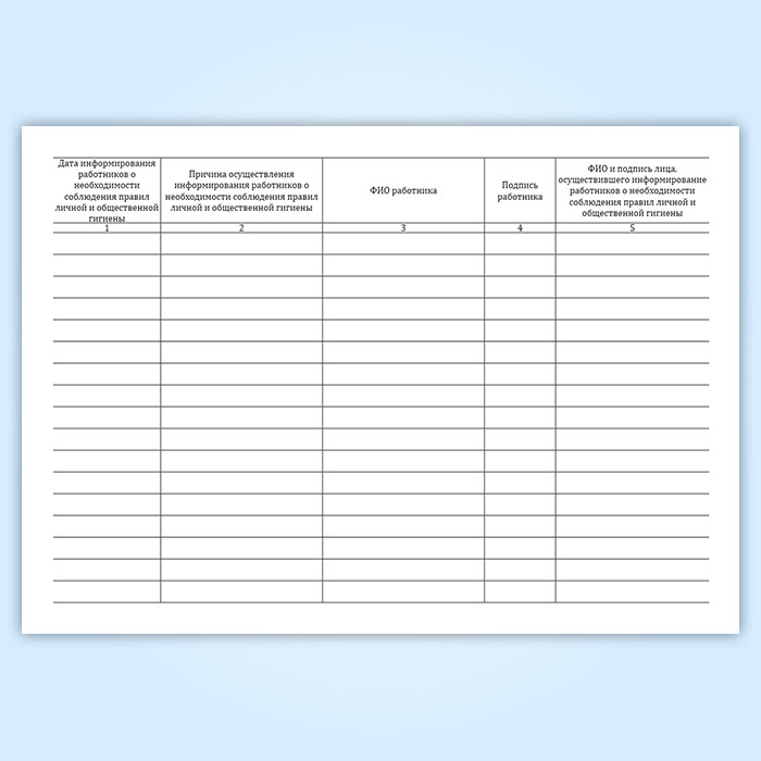В целях недопущения распространения коронавирусной инфекции на работодателей возлагается обязанность информировать работников о необходимости соблюдения правил личной и общественной гигиены. Контроль осведомленности сотрудников фиксируют в журнале.