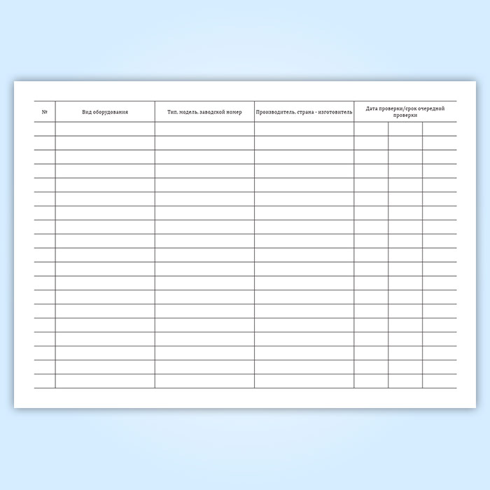Для регистрации средств измерений, сроков их проверок используют журнал, в котором указывают вид оборудования и дату проверки.