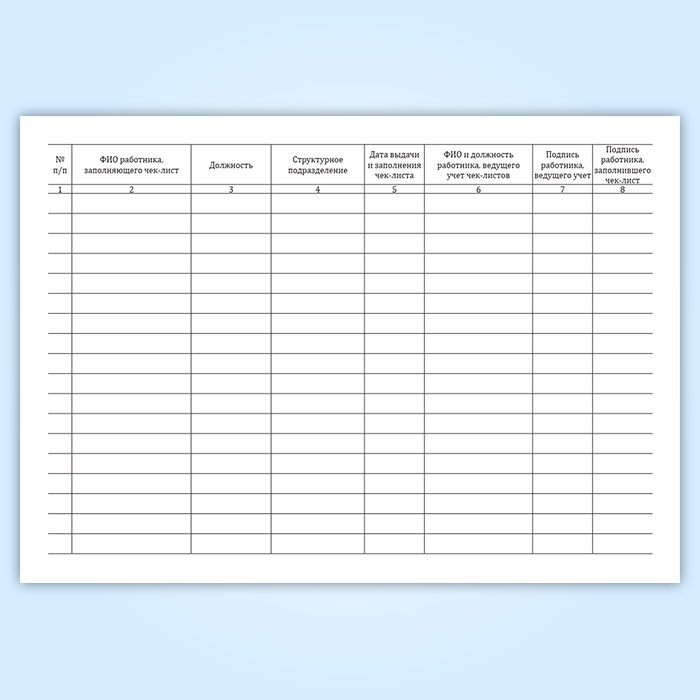 На чек-листе содержится информация, которая поможет принять правильное решение в условиях распространения коронавирусной инфекции. Учет выданных чек-листов ведут путем регистрации в Журнале учета чек-листов в связи с распространением коронавирусной инфекции.