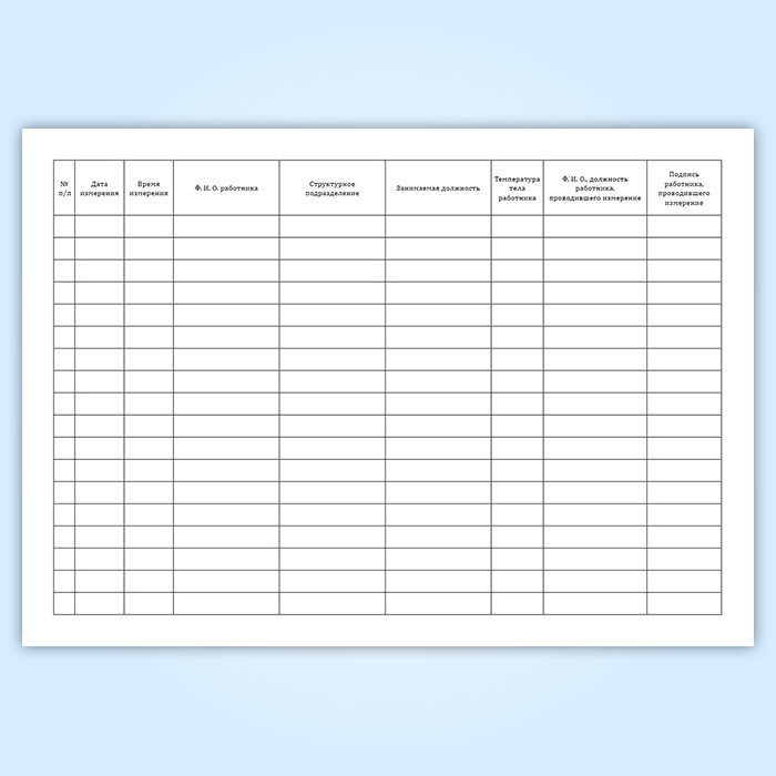Журнал регистрации измерения температуры работников для профилактики новой коронавирусной инфекции