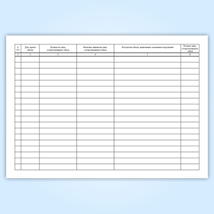 Сведения о выявленных нарушениях правил, инструкций и норм охраны труда, промышленной и пожарной безопасности вносятся руководителем структурного подразделения в журнал обходов рабочих мест.