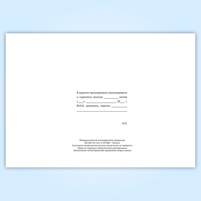 Вы получаете печатную продукцию прошнурованной и c местом для вашей печати в соответствии с действующими нормативными документами: