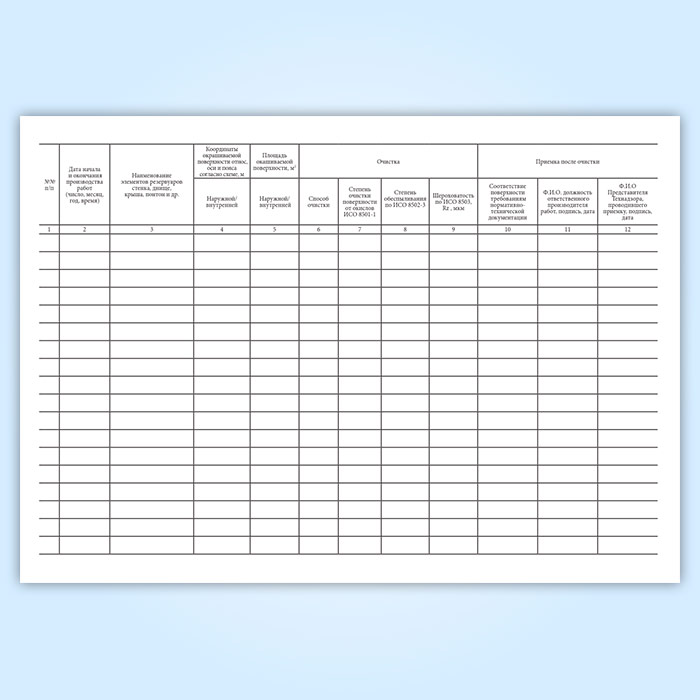 Работы по поэтапной подготовке поверхности при проведении антикоррозионных работ фиксируют в журнале.