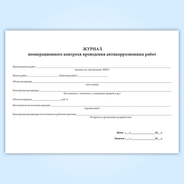 Журнал пооперационного контроля проведения антикоррозионных работ