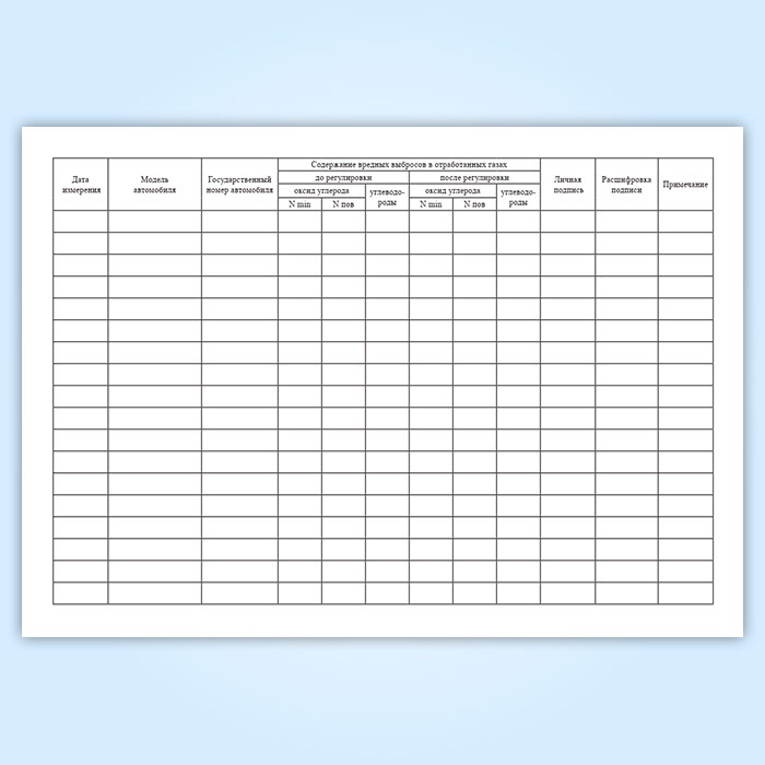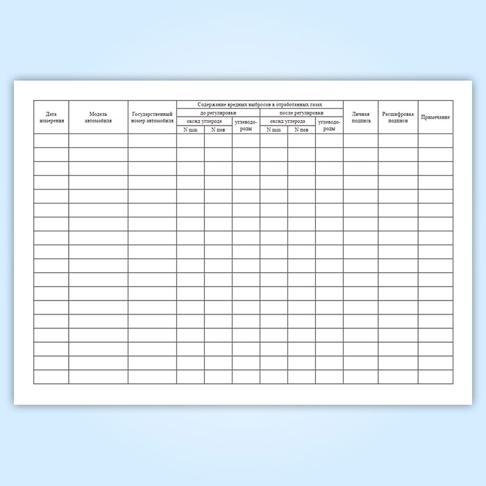 См. также журнал записи результатов проверок автомобилей на содержание оксида углерода и углеводородов в отработавших газах и состав рабочей смеси двигателя