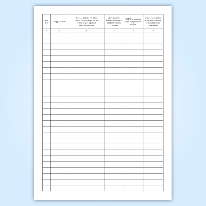 Журнал учета выдачи клейм в организации