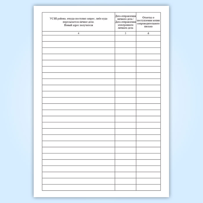 Журнал регистрации личных дел, высланных в связи с изменением места жительства получателя пособия