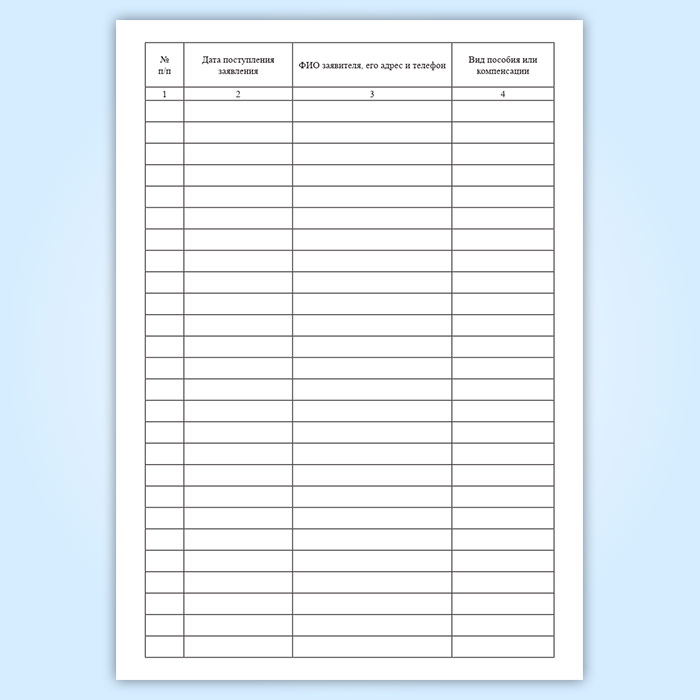 В журнале ведется учет по выплатам, пособиям и компенсациям для граждан РФ. Заносятся сведения, по которым производится перерасчет или продление денежной выплаты.