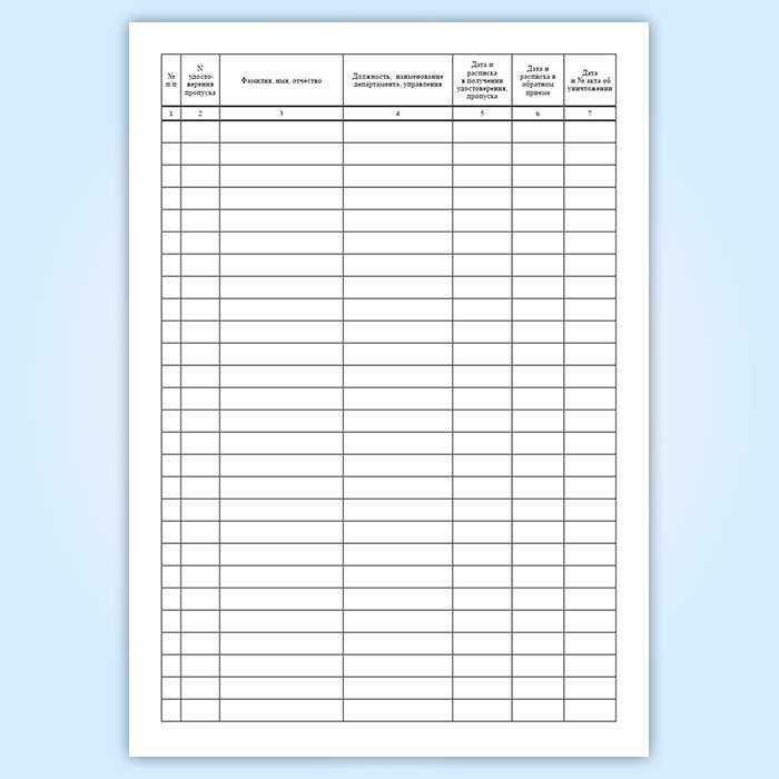 Книга применяется для учета выданных удостоверений и постоянных (временных) пропусков.