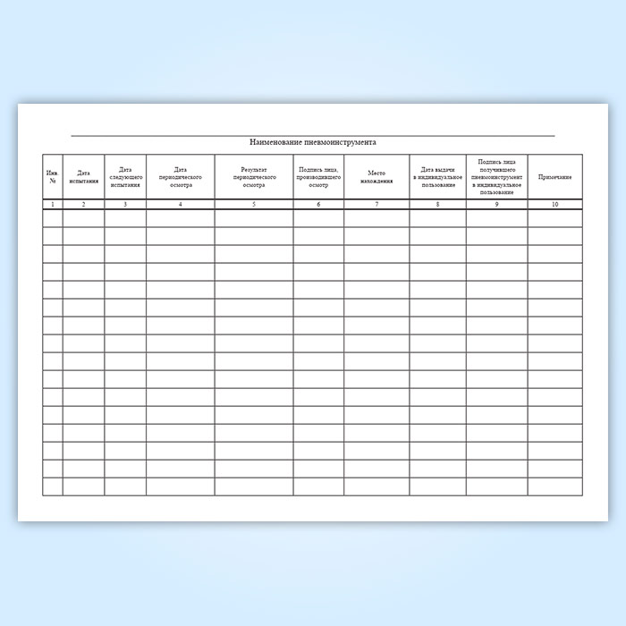 Журнал учета и осмотра пневматического инструмента
