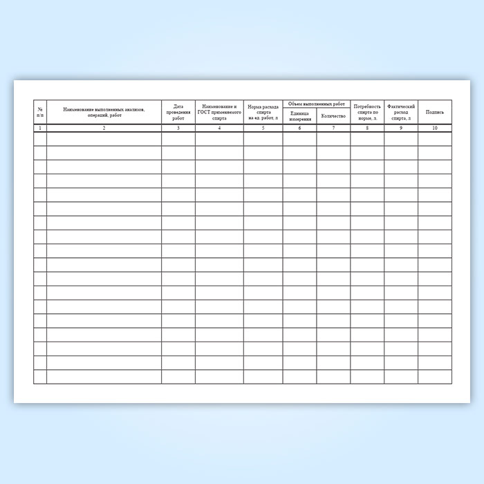 Данный журнал применяется в организациях для строгого учета расхода спирта.