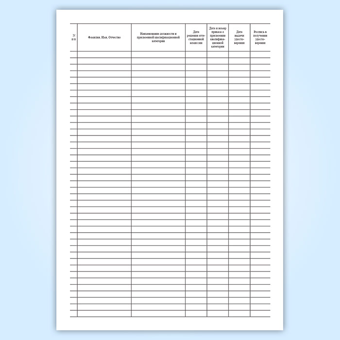 В журнал заносятся данные о выдаче удостоверений для руководителей при прохождении аттестации и переаттестации, получении квалификаций и категорий.