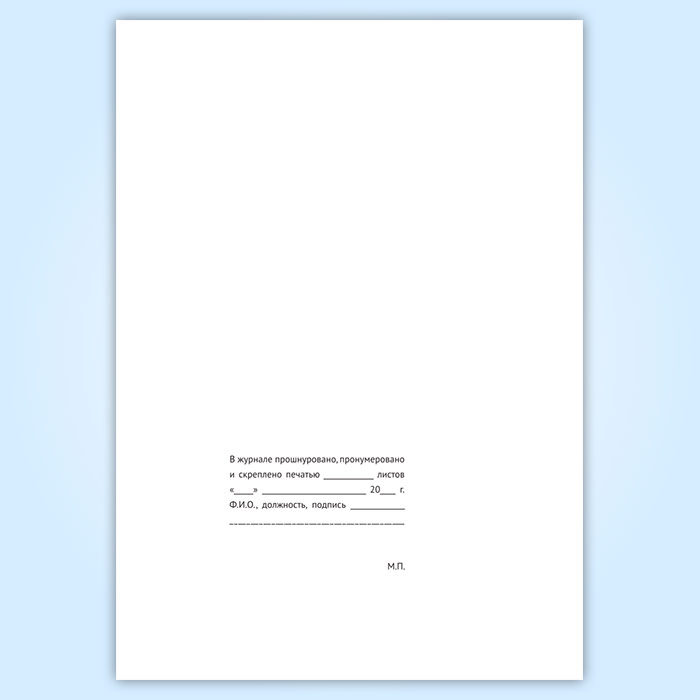В конце журнала - подпись проверяющего (ответственного лица, назначенного приказом), должность и дата.