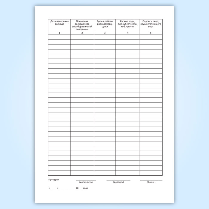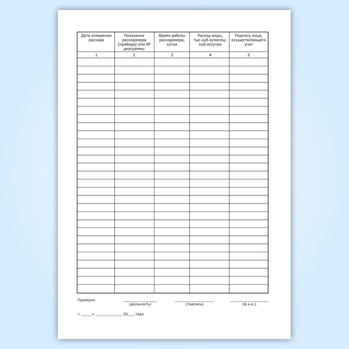 Расход воды (гр.4) показывается как разница предыдущего показания водомера с текущим (этой строкой). В данной графе расход воды должен быть суммирован по итогам месяца, квартала и года.
