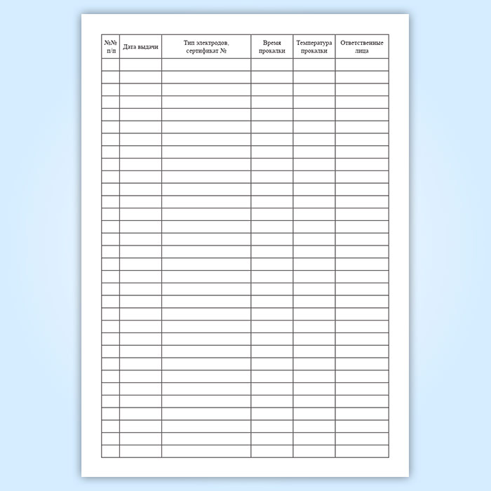 Журнал прокалки является документом, в котором фиксируются все процессы подготовки сварочных материалов.