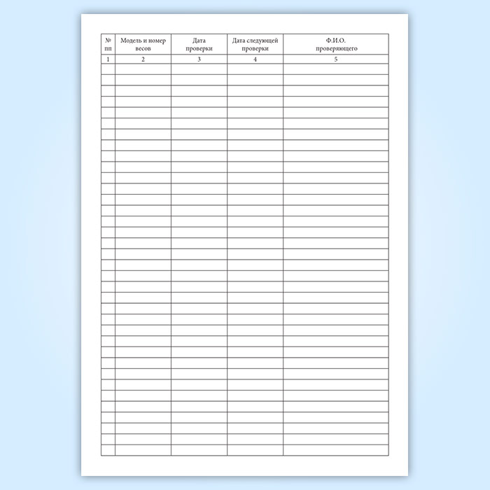 Журнал поверки весоизмерительного оборудования в предприятии общепита