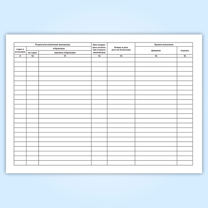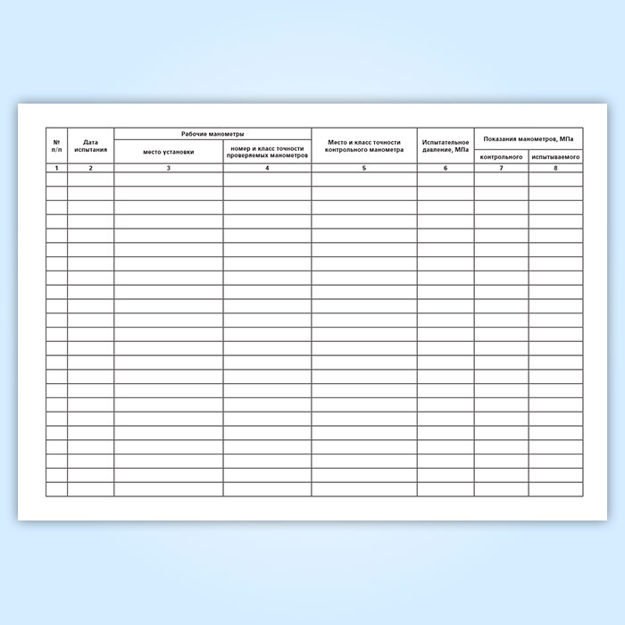См. также: Журнал проверки манометров, горизонтальная форма, Журнал проверок манометров, вертикальная форма, Журнал контрольных проверок манометров (КИП)