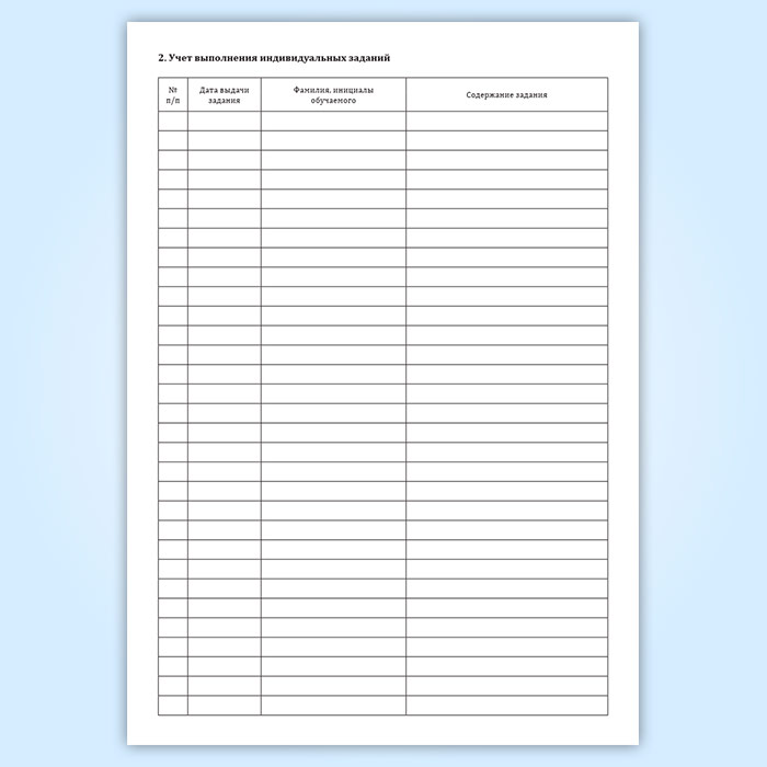 2. Учет выполнения индивидуальных заданий