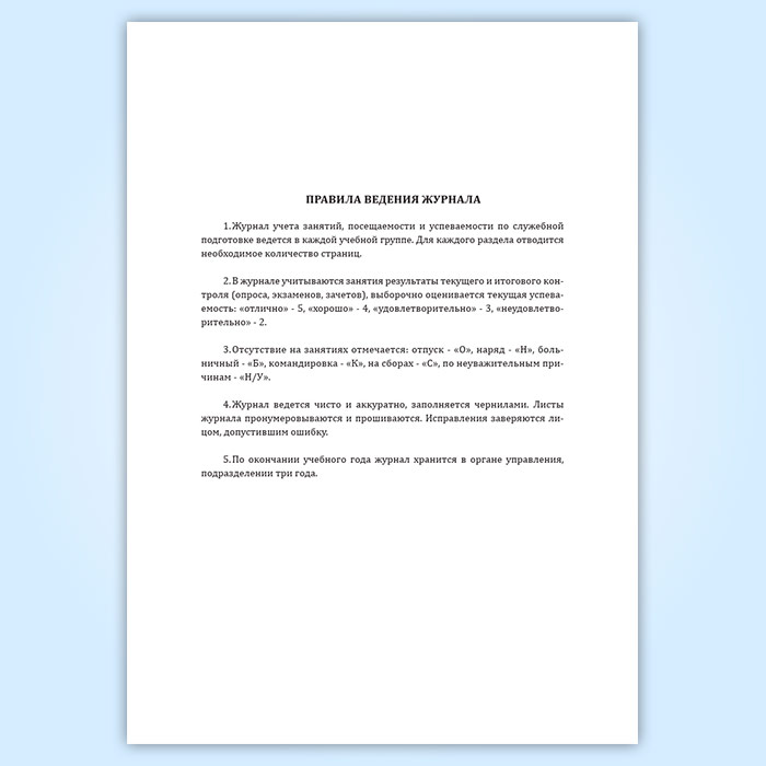 Журнал учета занятий, посещаемости и успеваемости личного состава в системе служебной подготовки