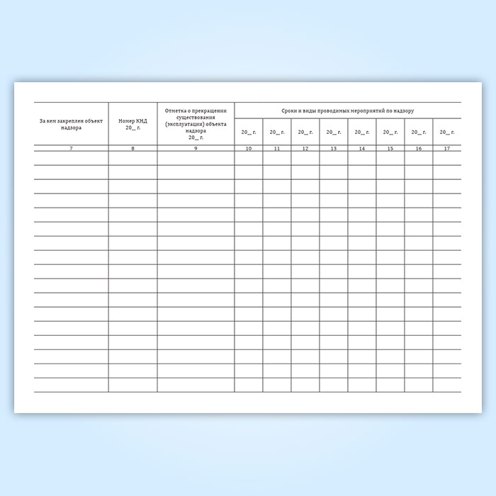 Журнал учета объектов надзора имеет графы:
