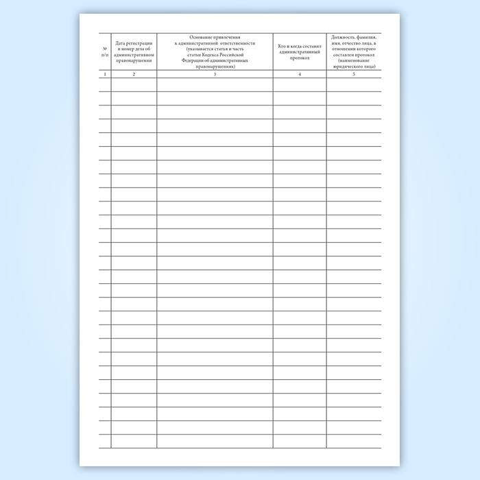 Журнал учета дел об административных правонарушениях имеет графы: