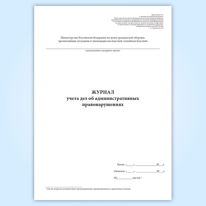 Журнал учета дел об административных правонарушениях (Приказ МЧС России от 14.06.2016 № 323)
