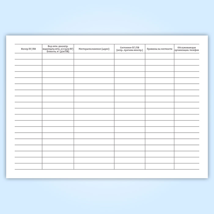 Журнал проверок противопожарного водоснабжения содержит графы:
