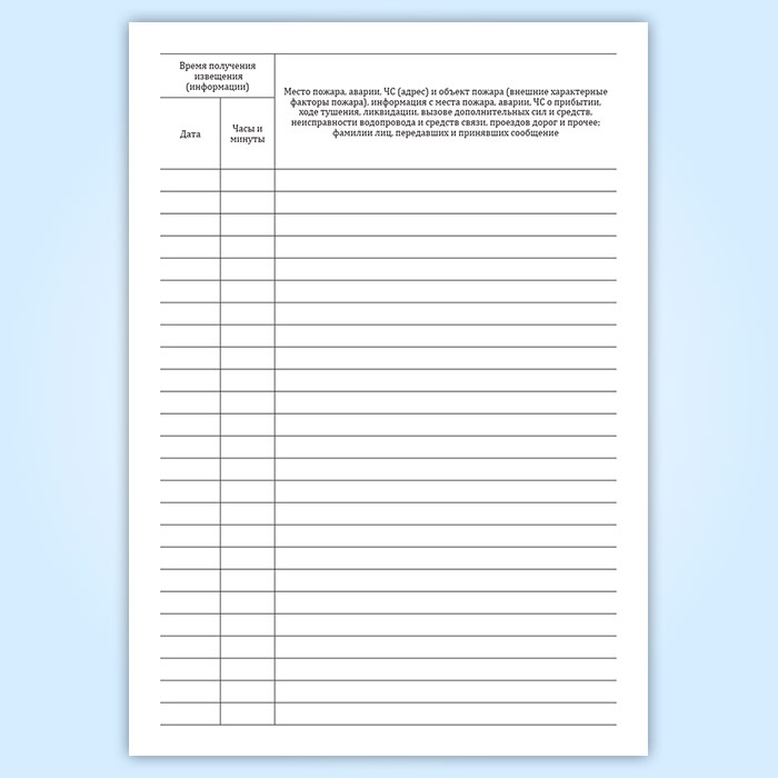 Форма журнала пункта связи соответствует Приложению №3 к Уставу подразделений пожарной охраны