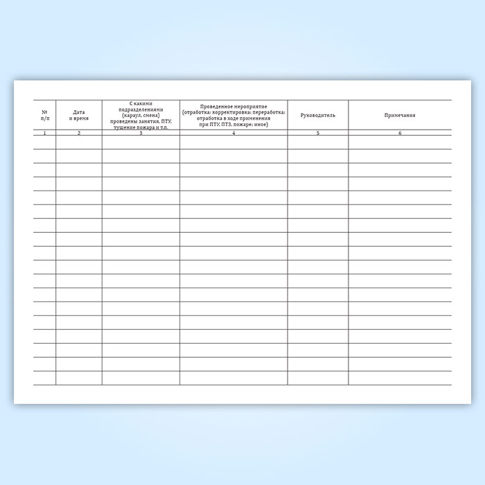 Журнал учета использования планов тушения пожаров и карточек тушения пожаров имеет графы: