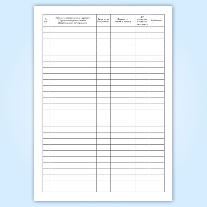 См. также Журнал наблюдения противопожарного состояния объекта