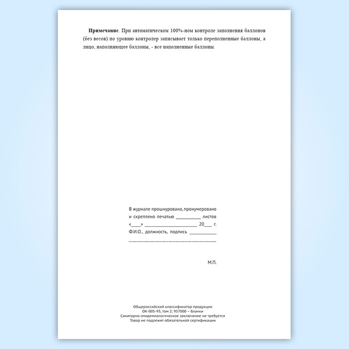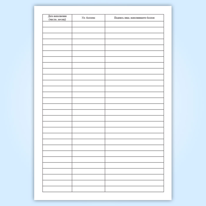 Журнал учета наполнения баллонов дыхательных аппаратов воздухом